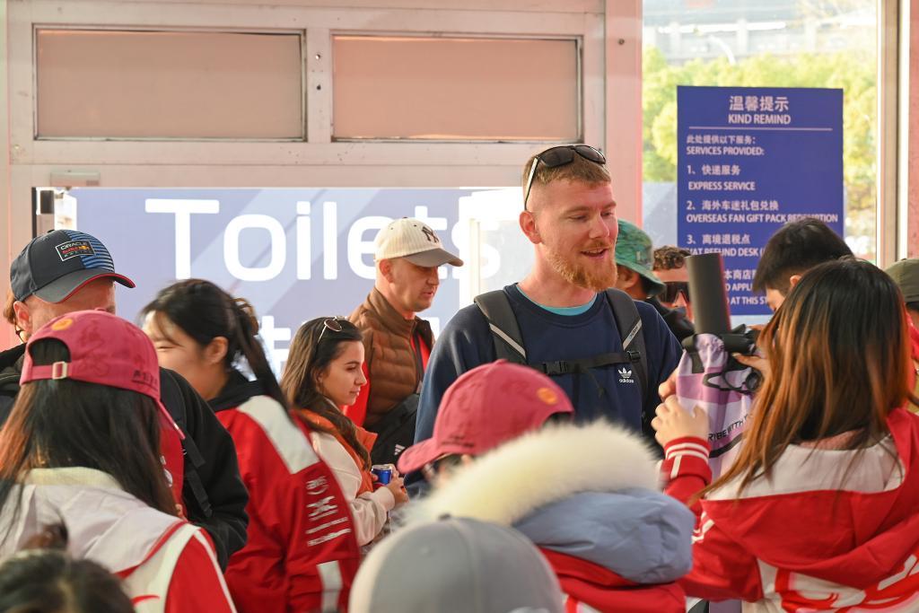 在F1举办地嘉定上赛场,来自全球各地的车迷点燃了澎湃的热情。赛事的纪念品商店里,来自全球各地的车迷领取了一袋纪念品。伊万与他的父亲托尼来自澳大利亚墨尔本,他们支持法拉利车队和迈凯伦车队,以及迈凯伦车队生于墨尔本的奥斯卡·皮亚斯特里。“上海的F1太棒了!”伊万说,“这里赛道和墨尔本不一样,是一条专用赛道,墨尔本是半街道赛道,在湖中的公园里,你的视野不大,上赛道视野更广,可以看到转弯,加速。我喜欢这样。”伊万说自己是第一次走出澳大利亚看F1,他买了三天的票,在进入上赛场前的汽车文化节,他惊叹于新技术的运用。“我看到了机器人在弹钢琴,还有跳舞。这些令人感叹。”伊万说。
