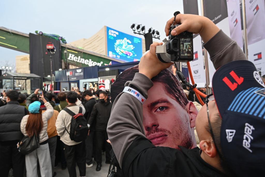 2026年3月11日,人气车手,红牛车队的维斯塔潘现身上海西岸,引发了车迷围观。澎湃新闻记者 吴栋 图