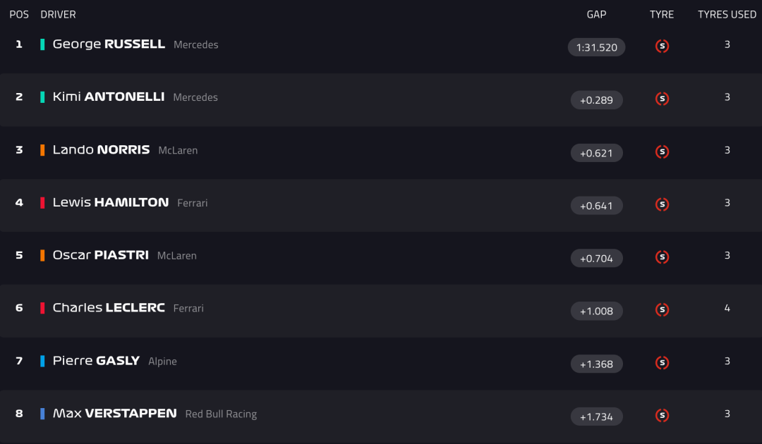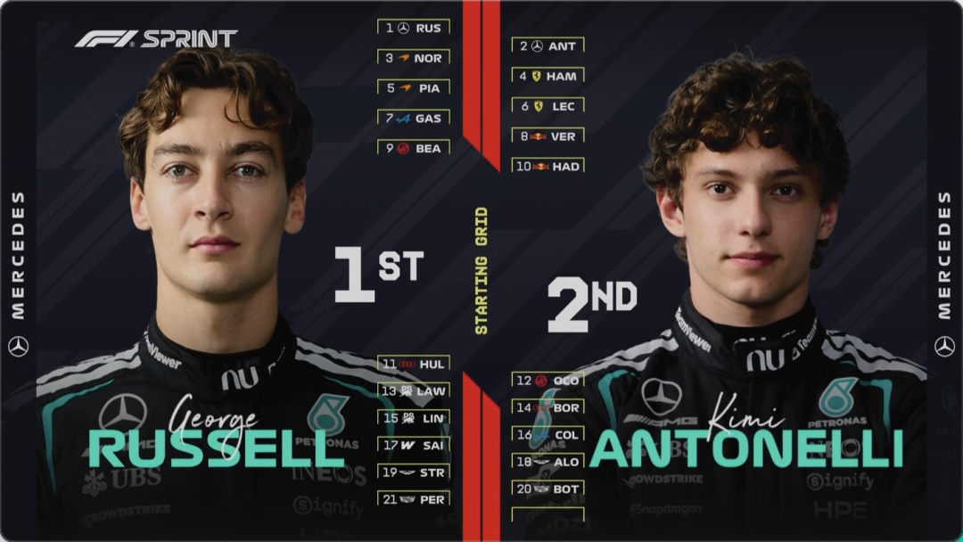 在昨天的冲刺排位赛中,梅赛德斯奔驰车队展现出了强大的实力,两台“火星车”包揽前二,获得冲刺赛杆位的拉塞尔单圈更是甩开了第三名诺里斯多达0.621秒,领先维斯塔潘1.734秒,许多车迷看完都说:梅奔不演了……
