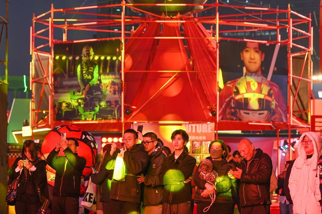 2026年3月11日,上海西岸,格子旗嘉年华的夜间演出吸引了游客的关注,嘉年华期间推出的“寻找周冠宇”主题展以中国车手周冠宇的成长历程为主线,通过“梦想的摇篮”“通往F1的阶梯”“历史与荣光”“蓄势与未来”四大篇章,系统呈现中国首位F1车手从爱好卡丁车的上海少年到征战世界顶级赛事的非凡轨迹。澎湃新闻记者 吴栋 图